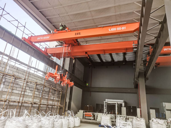 在黨101周年生日慶祝之際,奧力通起重機完成“三袋聯吊”智能噸袋起重機交付,該產品一次可吊運三袋噸袋,自動脫鉤,自動裝車;“三袋聯吊”世界首創,生產效率提升300%,節約人工70%;廣泛應用于食品、化工、礦業、冶煉等粉末狀或顆粒狀物料的噸袋自動裝卸。
