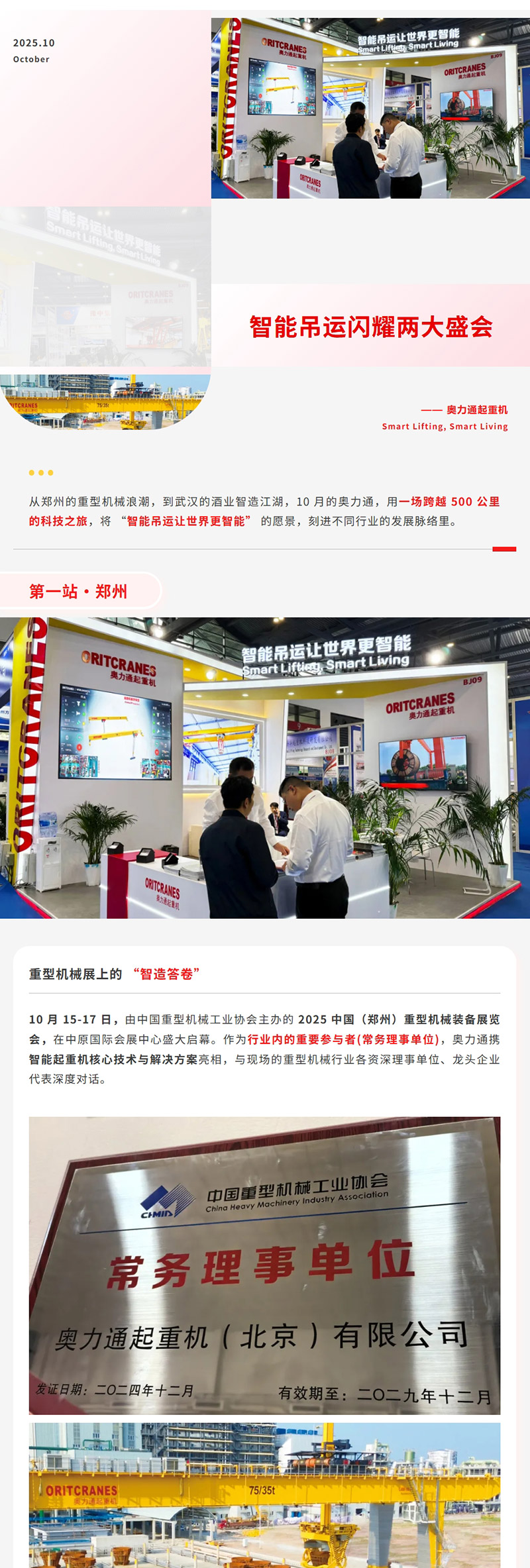 奧力通集起重機研發、制造、銷售、安裝、服務于一體,公司主要生產起重機、橋式起重機、門式起重機、雙梁起重機、單梁起重機、歐式雙梁橋式起重機、歐式單梁橋式起重機、歐式懸掛起重機、多支點懸掛起重機、歐式雙梁門式起重機、歐式單梁門式起重機、歐式半門吊、歐式壁行吊、歐式懸臂吊、歐式輕型起重機等通用標準起重機,以及全自動智能化起重機、冶金類起重機、防爆類起重機、航空專用起重機、核電站專用起重機、造紙專用起重機、電廠起重機等特殊專用起重機。